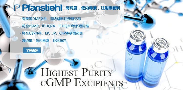 “熱烈祝賀Pfanstiehl的注射級甘氨酸Glycine(G-140)喜獲CDE登記號F20250000403, 這是Pfanstiehl產品獲得的第18個CDE登記號!”甘氨酸在醫藥輔料制劑中應用廣泛,, 可作為緩沖劑,增溶劑,穩定劑等,具有諸多優勢。Pfanstiehl秉承一貫高品質理念,為滿足全球生物制藥行業對于高品質甘氨酸的需求,隆重推出的注射級甘氨酸Glycine (G-140), 具有超高純度,超低內毒素,超低金屬殘留的特點,單獨檢測29種金屬離子,并且新增DNA,RNA,DNA酶,RNA酶和脂肪酶,亞硝酸鹽等多項質量指標的檢測,符合多國藥典規定(USP, EP, BP, JPE, ChP),可用于生物治療性藥物和疫苗的生產。產品信息:· 產品名稱:Glycine, High Purity, Low Endotoxin, Low Metals, USP, EP, BP, JPE, ChP (G-140)· 中文名稱:甘氨酸· 分子式:C2H5NO2· 分子量:75.07 g / mol· CAS號:56-40-6· 產品貨號:G-140產品特點: · 超高純度,超低內毒素,超低微生物含量,超低金屬雜質殘留· 質量指標新增DNA,RNA,DNA酶,RNA酶,脂肪酶和亞硝酸鹽檢測· 符合多國藥典:USP, EP, BP, JPE, ChP· 符合ICH Q3D標準· 符合GMP標準· 已獲DMF和CDE登記號 產品應用:· 緩沖劑· 穩定劑· 增溶劑如果您對Pfanstiehl注射級別Glycine G-140感興趣,歡迎聯系Pfanstiehl 中國區代理商北京西美杰科技有限公司獲得如下詳細的產品概況說明文件和測試樣品。Pfanstiehl Inc.最新產品系列如下,歡迎聯系北京西美杰科技有限公司獲取100g裝免費樣品。北京西美杰科技有限公司為Pfanstiehl中國代理,為客戶提供完善的技術支持與售后服務。歡迎撥打西美杰客服電話400-050-4006或者登陸網站www_xmjsci_com.localsmostpopular.com了解更多信息。 更多>西美杰介紹